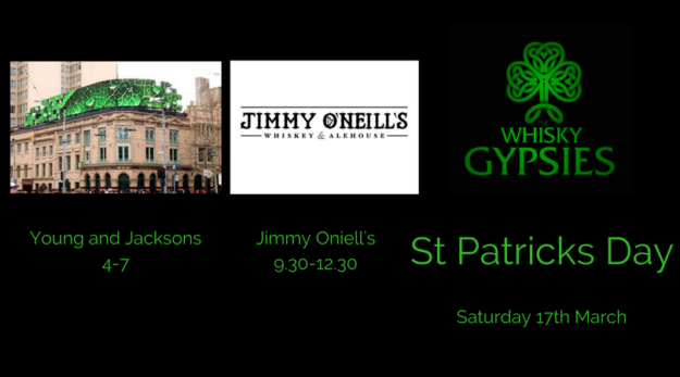 St Patricks day – Saturday 17th of March! We’re Playing at; Young and Jacksons – 4-7pm Jimmy O’Niells – 9.30-12.30pm Come join us for a Guinness and a Jig!